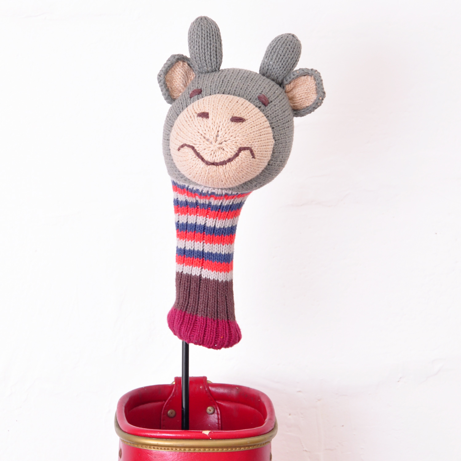 This animal head golf club cover is hand knitted in organic cotton. The neck is lined with stretchy fleece, to ensure that the cover stays on. The cover is suitable for drivers sized up to 460cc.