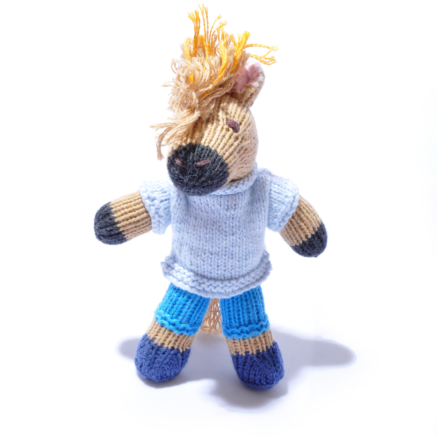 Organic Cotton Horse Toddler Soft Toy in Blue Top