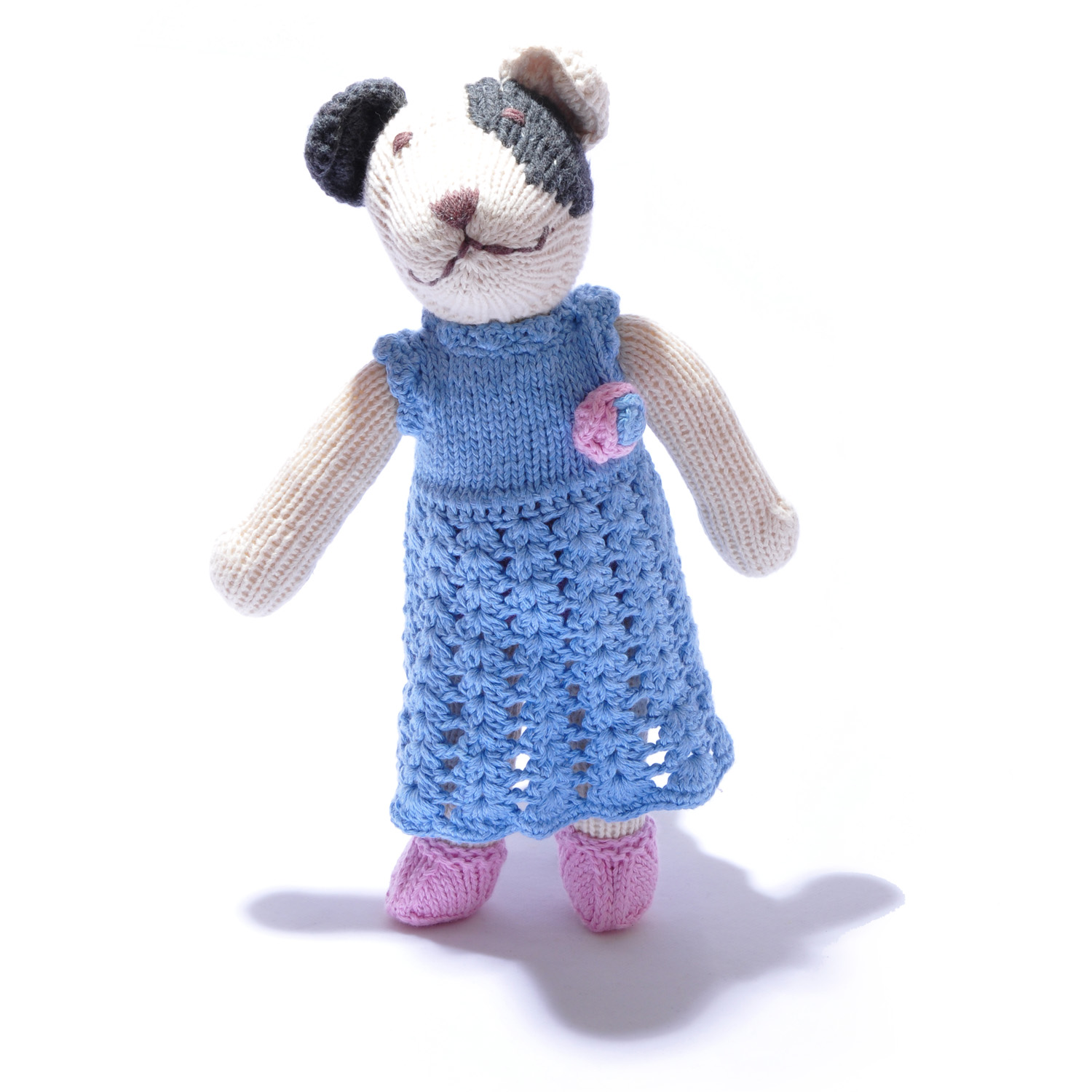 Organic Cotton Spot Dog Soft Toy in Changeable Crochet Dress
